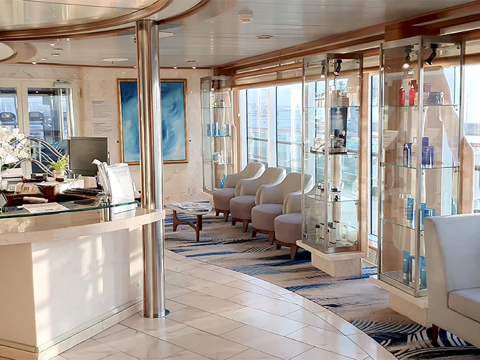 海側に面した眺めのよい美容室や各種トレーニングマシーンが揃うスポーツジムなど、船内には多彩な設備を完備しています。サウナ、お灸や整体、マッサージなど、健康をテーマにしたプログラムも人気です。