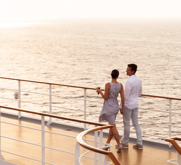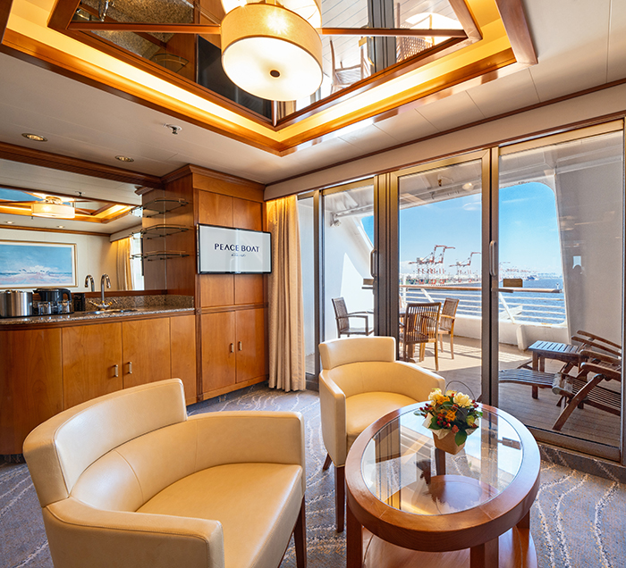 船内のどこもが、ゆとりあるくつろぎのあなたの居場所です。エンターテインメント設備も充実しており、音響・照明設備が整った大型シアターやラウンジ、オープンデッキに設置された屋外シアターでは、波の音をBGMにゆったりと名作映画の数々をご鑑賞ください。