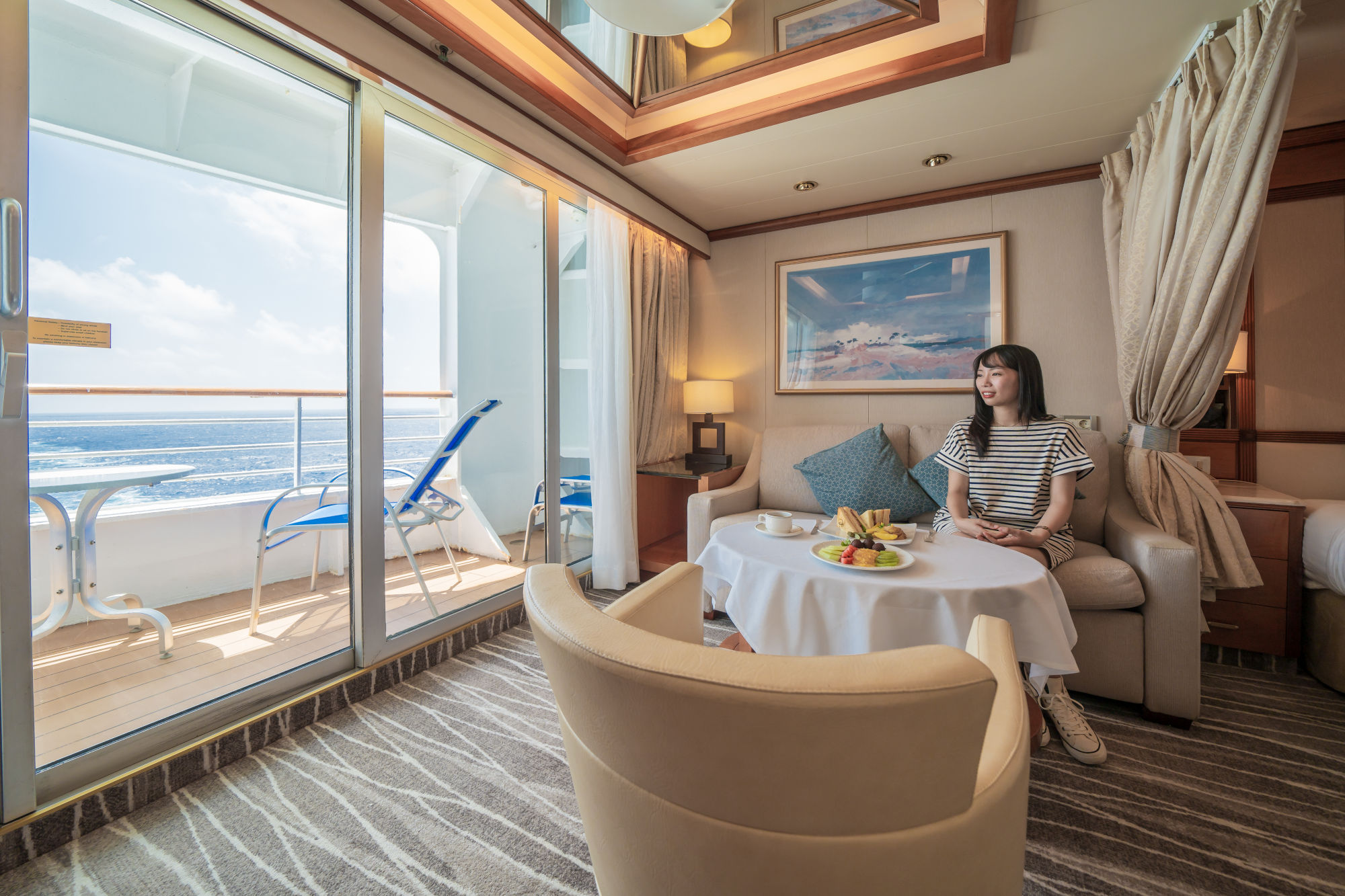 バルコニー付き船室では、北欧やアラスカのフィヨルド遊覧、運河通航、オーロラ鑑賞など、クルーズならではの風景をご自身の船室から堪能できます。船旅においては、“移動中”もエンターテインメント。リラックスできる空間で、あなただけの絶景をお楽しみください。
