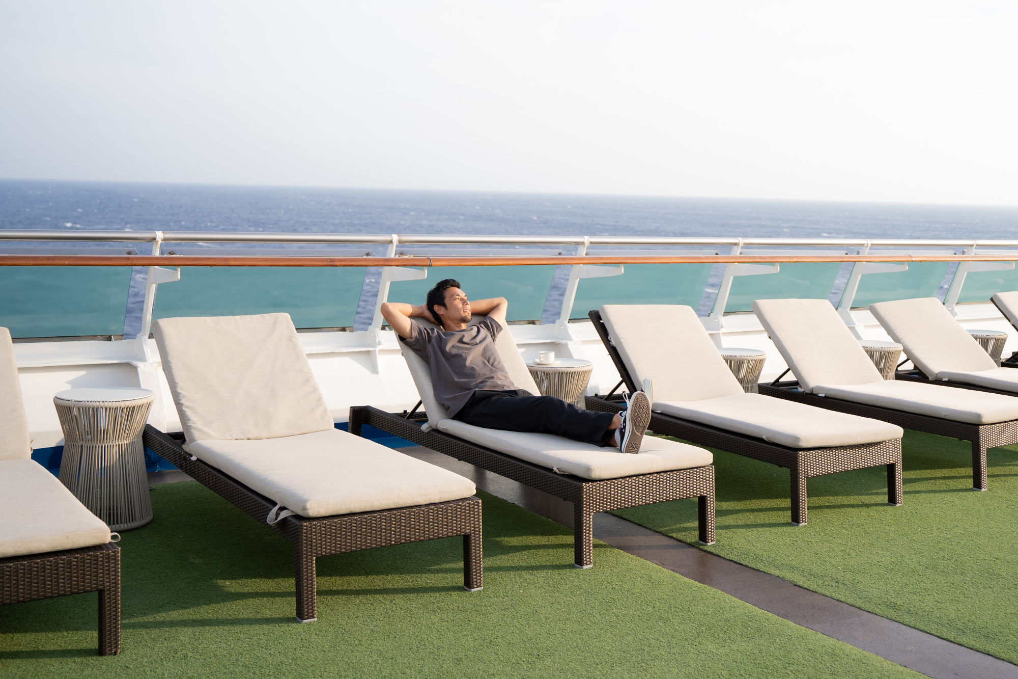 4層吹き抜けのアトリウムやラウンジ、レストランなど、ゆとりのある広々とした設計が特徴的なパシフィック・ワールド号。海を近くに感じられる上質なやすらぎが、あなたの船旅をより充実したものへと導きます。