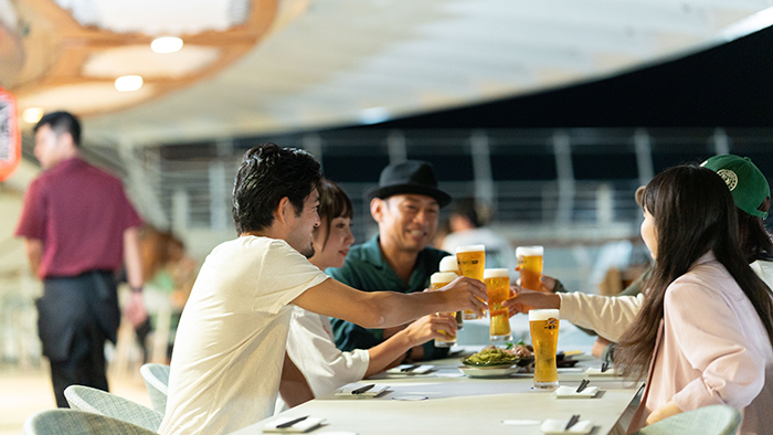 屋台風居酒屋「波へい」は、串焼きをはじめ、お酒に合うメニューが楽しめるとあって船内でも人気の場所。船内でできた友人たちと乾杯をして食事をしたり、星空を眺めながらお話をしたりと、日々たくさんの方が交流を深めています。