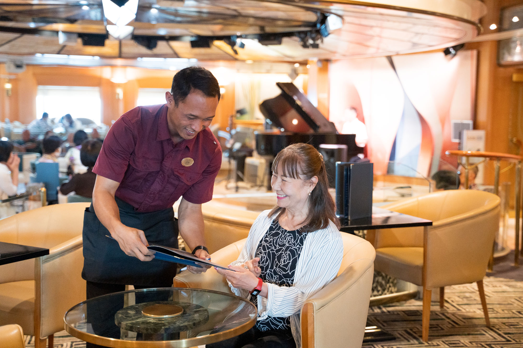 次に訪れる寄港地の調べ物をしたり、旅の様子をSNSで発信したり。すべてのパブリックスペースや船室で、無線LAN対応端末(スマートフォン・タブレット・ノートパソコン)で高速インターネットサービス『スターリンク』をご利用いただけます。世界をめぐる船の上で、”世界といつでもつながれる”感覚を体感してください。