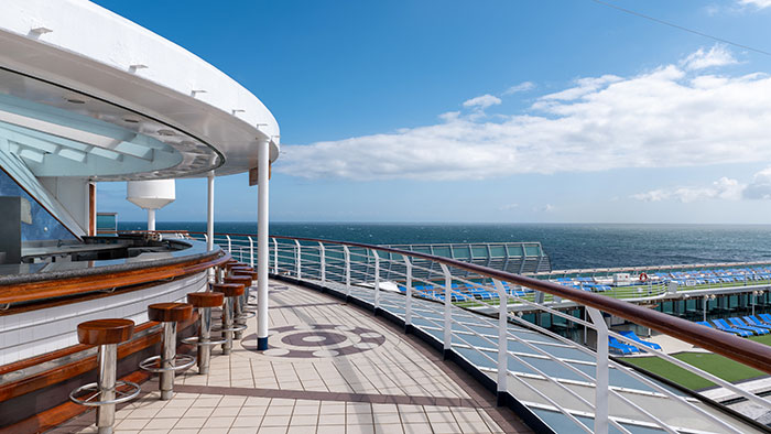 船ではデッキがお気に入りです。12階のデッキは天気のいい日はものすごく爽やかで気持ちがいいんです。7階のデッキもよく利用していて、水先案内人の方の講義を聞いたあとに外に出て風を感じています。海もきれいですし、山とは違ったよさがありますよね。移動のときもあえて外を歩くようにしていて、上に行くほど気持ちがいいです。