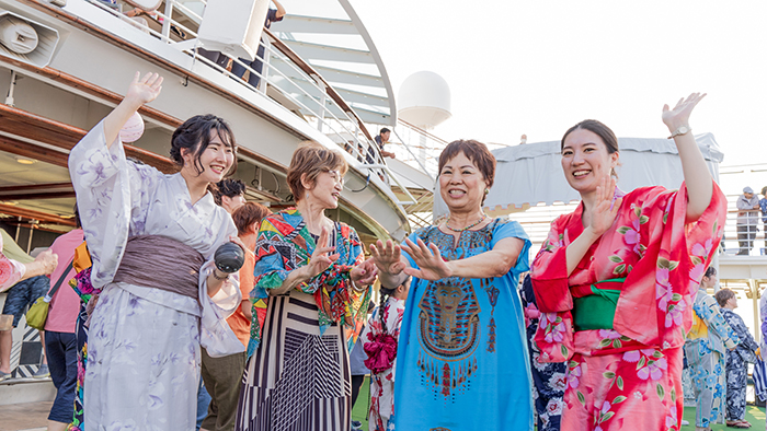 最初は普通の客船と変わらないかなと思っていたんですが、そのうちに自主企画のおもしろさに気付きまして。初乗船のときは船内で知り合った3人で社交ダンスを企画しました。自分が企画をすると、今度は他の自主企画でもいろいろやっているのが見えてくる。いろんな人がいろんな企画をやっているのがおもしろくて。今では、自主企画を目当てに乗船しているようなものです。