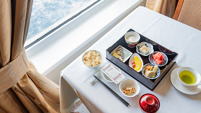 船内ではもともとの生活リズムを乱したくなかったので、朝はきちんと起きて、夜は遅くならないように心がけていましたね。日中に活動することが多かったです。空いている時間には読書をしたり、海を眺めたりする時間も結構ありました。ごはんを食べるのも大好きなので、朝は和食の朝ご飯をしっかり食べて、夜はいろんなコース料理が出るのでそれをお目当てに行ったり。場所と時間帯によってはサンドウィッチやクッキー、スコーンが出ることもあるので、それもほぼ毎日食べていました。お気に入りのメニューがいっぱいありましたし、本当にごはんがおいしかったですね。