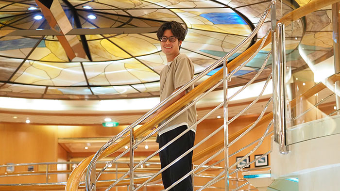 船内では、ジムとサウナをよく利用しています。複数のレストランでコース料理やビュッフェが食べられるので、もう存分にご飯を食べてます。だからどうしても食べる量が増えるので、乗船後からジムに通い始めました。「一人だけの時間がほしい」という思いもあるので、一人でジムやサウナにいるときは、“自分の時間”を楽しんでいます。あとは仕事でスマートフォンを扱っているので、自主企画で使い方講座をやりました。さまざまな年代の方が聞きに来てくれて、特に年配の方にはその後よく話しかけられるようになりました。交流も程よく増えましたし、仕事を活かしてそんなつながりがもてるんだと感じました。