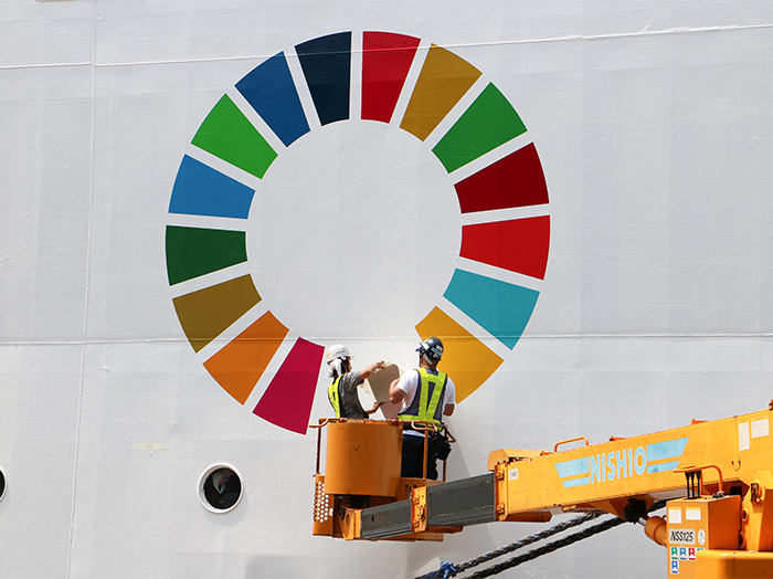 毎日の心地よさを追求した“究極の移動手段”と呼ばれるクルーズ客船でありながら、ピースボートは国連とパートナーシップを結び、「持続可能な開発目標(SDGs)」の公式キャンペーン船として航海をしています。ピースボートクルーズはこれからも、たくさんの人と人、そして世界をつなぎ、持続可能な船旅をつくり続けています。