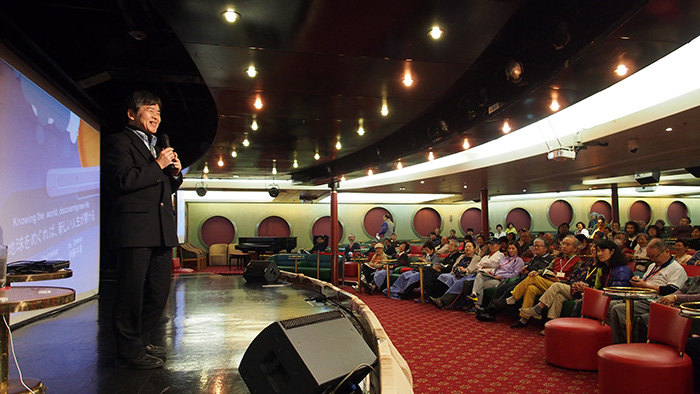 ピースボートクルーズは「持続可能な開発目標(SDGs)」の公式キャンペーン船として快適ながら、環境にも配慮した旅であるための取り組みを実施しています。また、国際交流の船旅を長年コーディネートしてきた実績から、船上では国際会議が開催されることも。2019年にはニューヨーク停泊中の船上で、「世界海洋デー」を記念する国連の公式レセプションが開催されました。市民に開かれた会議の数々も、これまで国連や各市民団体と築いてきたパートナーシップの成果です。