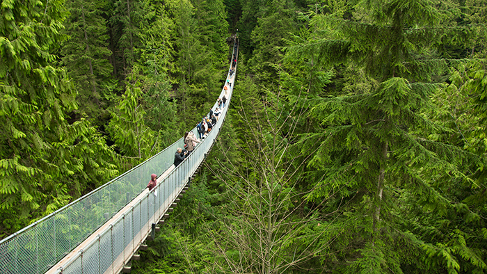 北米有数の大都市ながら、都会的な街並みと自然の融合が美しいバンクーバー。郊外に広がるキャピラノ渓谷では、巨大な吊り橋や、空中散歩が楽しめるスカイウォークを体験するなど、バンクーバーの大自然の中に飛び込む爽快な時間をお過ごしください。